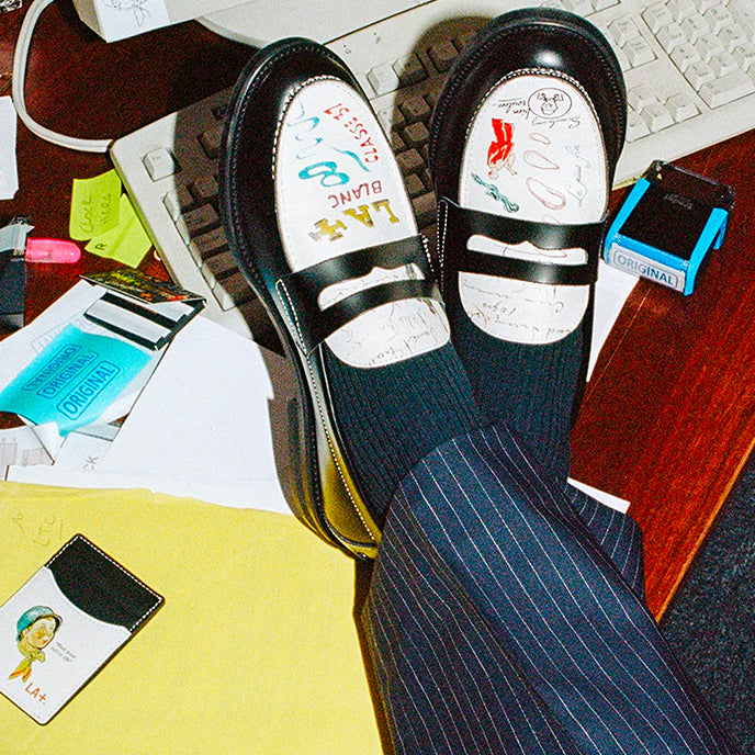 Designed and developed in-house, the collection is the result of a close creative partnership between DUKE + DEXTER’s in-house artists Jess and Valentino, who took inspiration from Rizla’s historic archives - uncovering and reworking 19th-century artwork to give each piece a distinctive graphic narrative which is seen throughout the offering, across loafers, cardholders, T-shirts and hoodies, including: